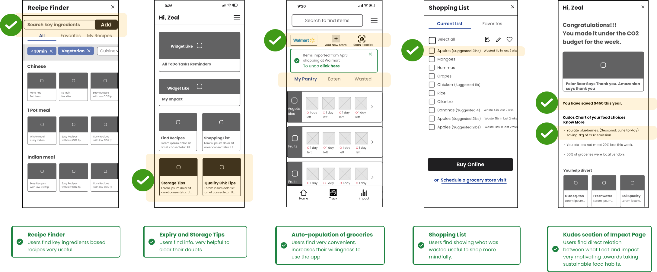 Designed a mobile app to help users reduce food waste and nudge them towards sustainable food eating habits.