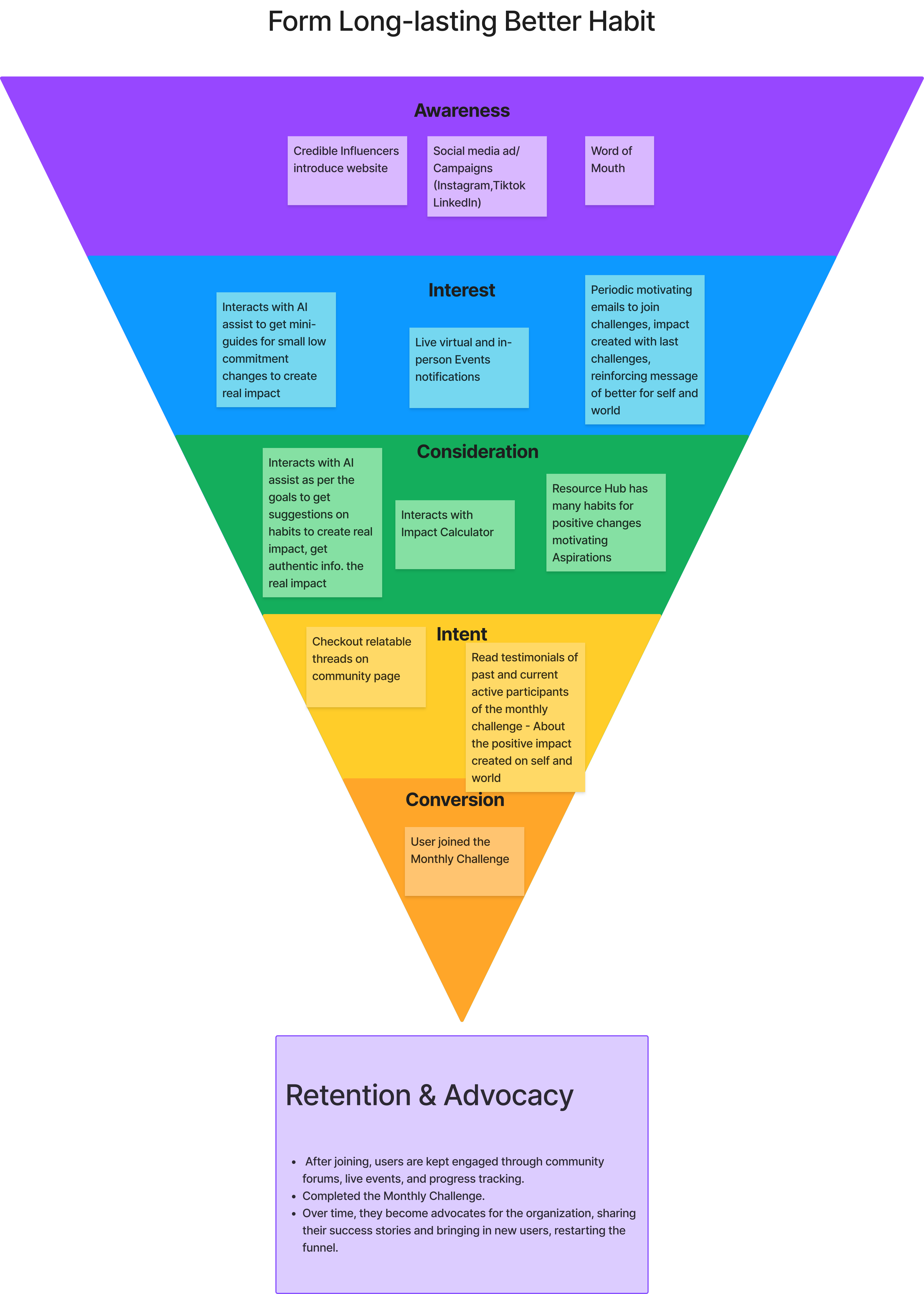 To enable users to build habits as per the Habit Building Strategy, I created the Website Conversion Strategy, designed new user journeys for different types of users visiting the website.