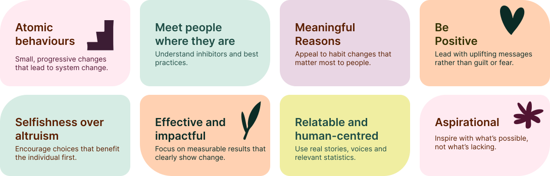 We synthesized research-backed core principles that would actually drive users to adopt sustainable habits as below